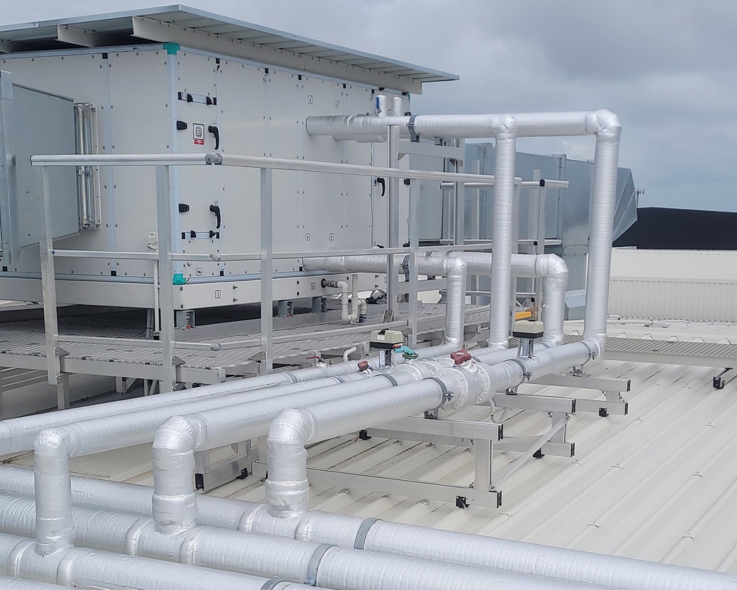 We work on a wide range of sites, from small to large industrial factories where a wide range of pipework types are used, these include heat pipes, steam pipes, water pipes, glycol, CO2, condensate, chilled and ducting. We work in dairy factories, food preparation sites and pharmaceutical factories, as well as factories or workshops that require insulation supplied to onward clients.
